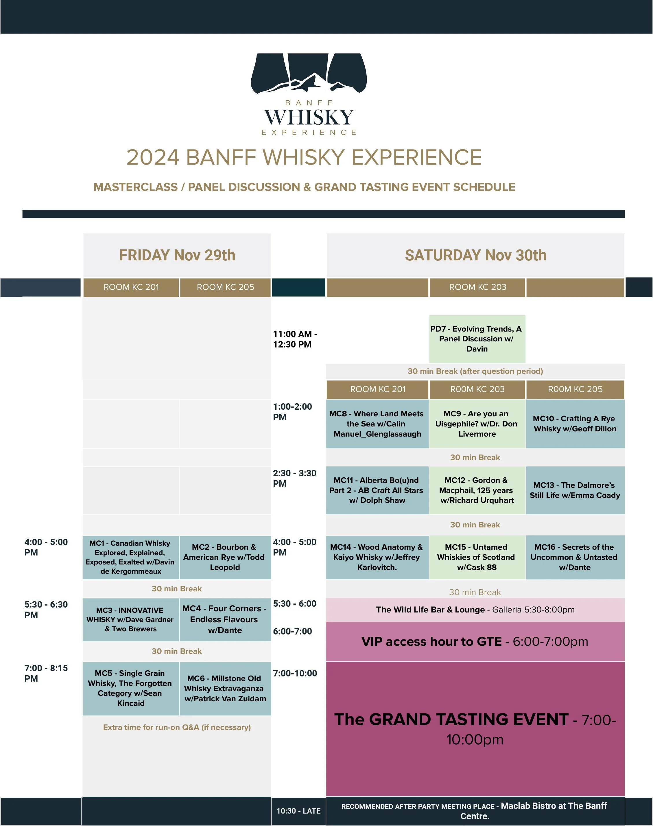 In this most interactive Masterclass, each guest will have the rare opportunity to engage the master distiller / blender / owner of the 5 most “up and coming” craft distilleries in Alberta/Canada. Straight from the cask, their golden elixir will bathe your palate, steeping you in their unique history; all while you learn of the vision and the motivation of these captivating craft entrepreneurs.
